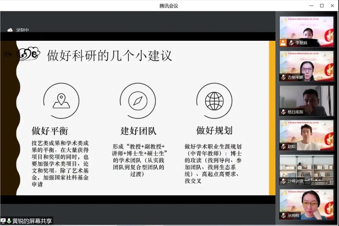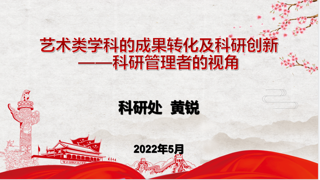 最后,黄锐处长为学院教师做好科研工作提出了“做好平衡、建好团队、做好规划”三项宝贵的建议,并与全体教师共勉:时间只记住精品,艺术只承认一流!