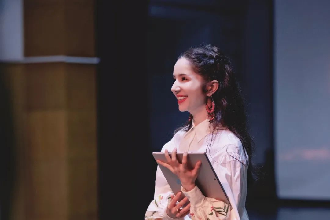 古丽米娜老师以纪录片《中国新疆之历史印记》片段和舞剧《五星出东方》幕后访谈视频的方式,“道”出该剧背后“五星出东方利中国”汉代织锦护臂文物所体现的中华民族历史上的交往交流交融,彰显了中华民族生生不息的精神与力量。