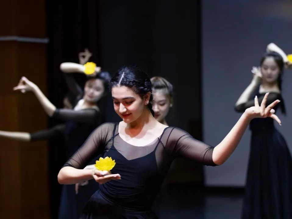 在本学期实践剧场课程中,古丽米娜老师教授了这部舞剧中具有传统文化内涵的舞蹈片段《灯舞》,并将自己参演这部舞剧时的实践经验融入教学之中,体现出舞蹈课程思政内化于心、外化于行的特点,让同学们感受到美丽又多彩的中华传统文化之美。