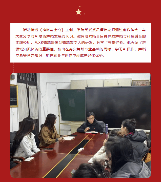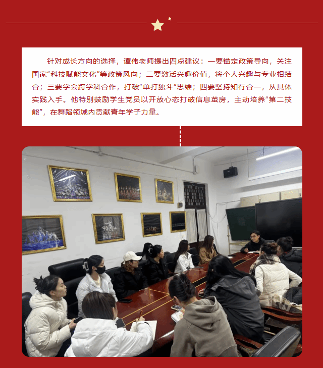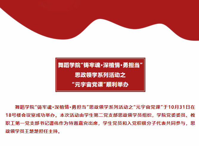 此次“元宇宙党课”创新思政教育形式,通过科技与艺术的深度融合,使“两个结合”与文化自信在超越现实的感官体验中内化于心。未来,学院将持续推动跨学科实践,搭建校企合作平台,培养适应时代需求的复合型舞蹈人才,为文化强国建设注入新的活力。