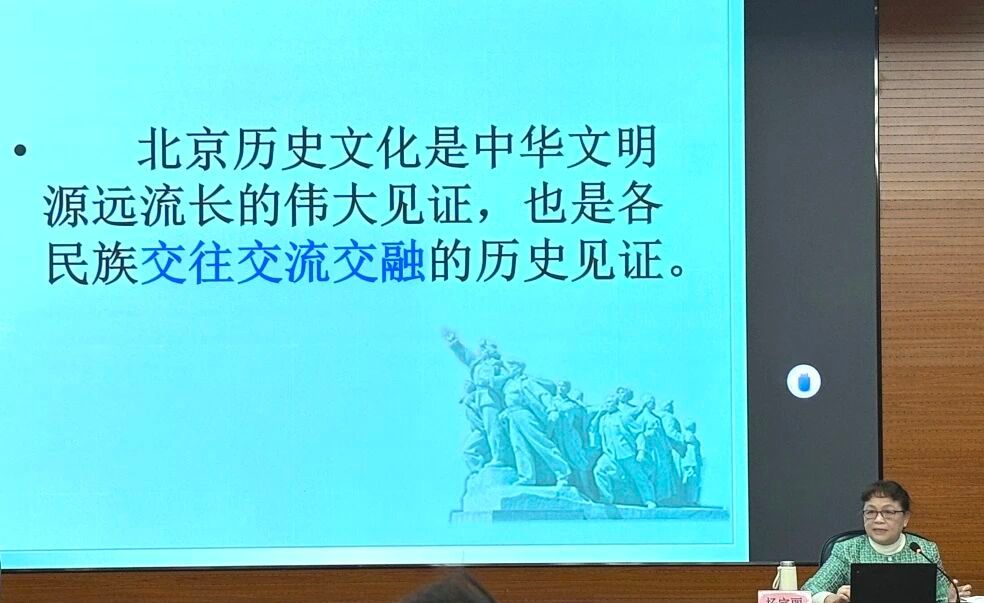 讲座中,杨宗丽教授紧扣主题,通过梳理北京三千余年建城史、八百七十余年建都史,以生动的历史叙事展现了这座古老都城作为多民族文化熔炉的独特魅力。她从辽金时期讲起,层层递进地阐释了北京以其博大的文化胸襟,融会贯通各民族优秀文化的演进历程。杨宗丽教授特别强调,bw必威西汉姆联官网自1951年建校以来,始终践行“美美与共、知行合一”的校训精神,是“共美”理念的重要实践阵地。她勉励必威BETWAY西汉姆联师生要立足北京这片包容沃土,传承民大共美传统,在艺术创作中将各民族舞蹈元素融会贯通,用肢体语言展现中华民族多元一体的美好图景。