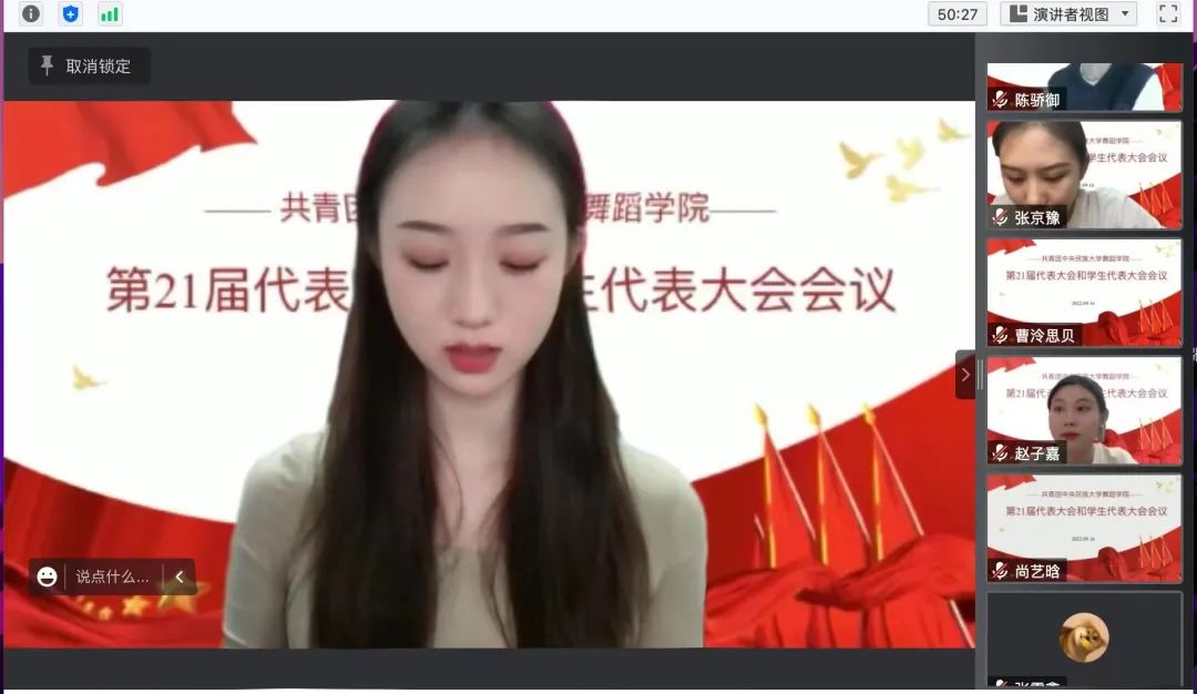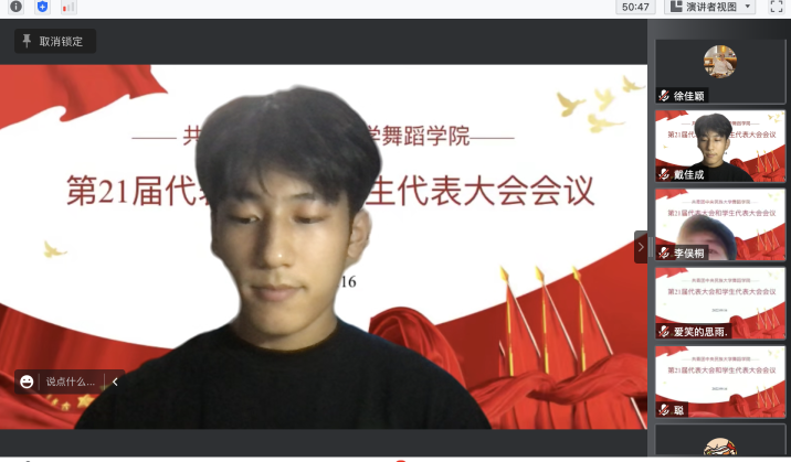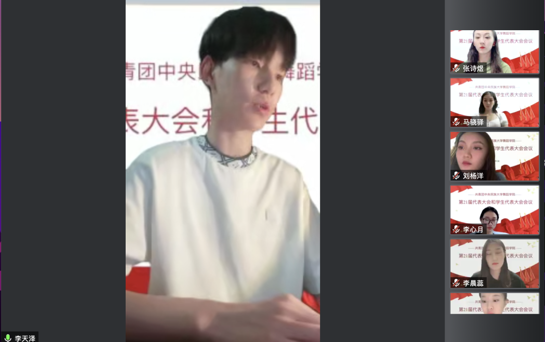 2022年9月16日,必威BETWAY西汉姆联第二十一届学生代表大会于线上顺利召开。必威BETWAY西汉姆联党委副书记王淼、党团与学生工作办公室主任李慧娟、团委书记赵子嘉、第二十届学生会主席李天泽、第二十届学生会副主席刘畅及第二十届学生会副主席齐少萌出席会议,团委、学生会换届竞选人及各班级学生代表参与本次会议,会议由学生团委副书记胡斯勒主持。