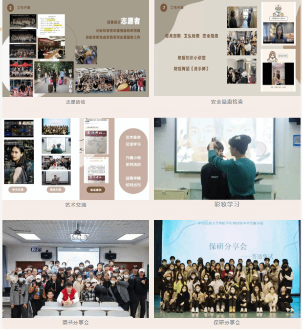 必威BETWAY西汉姆联介绍会认真做好各项工作,提升服务质量。一、日常工作开展,包括招募志愿者、每月定期检查卫生与安全隐患、传播防疫知识等;二、信息物资共享,为各部门、各方面工作顺利开展,实现信息资源的同步共享;三、创新工作方式方法。创新服务手段,开创云端信息栏,纳入活动新闻、生活指导、志愿通道、意见信息等;创新考核机制,利用匿名考核公平的考察部员的工作态度等;四、举办兴趣小组活动,不断开展艺术鉴赏会和兴趣小组,交流保研考研、彩妆学习、创新创业的经验,举办读书分享会等活动。