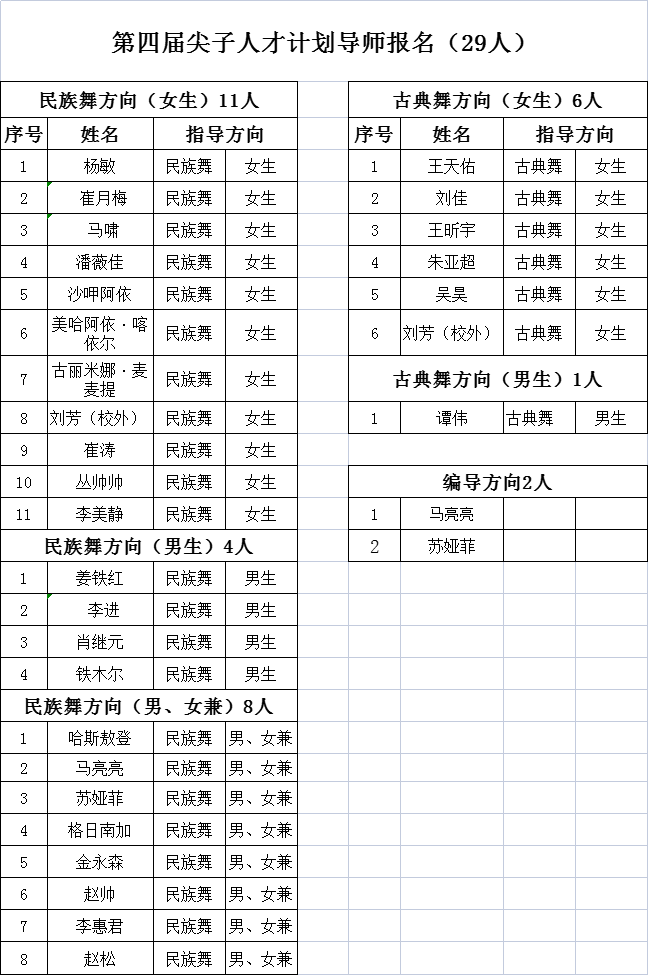第四届尖子计划导师报名名单