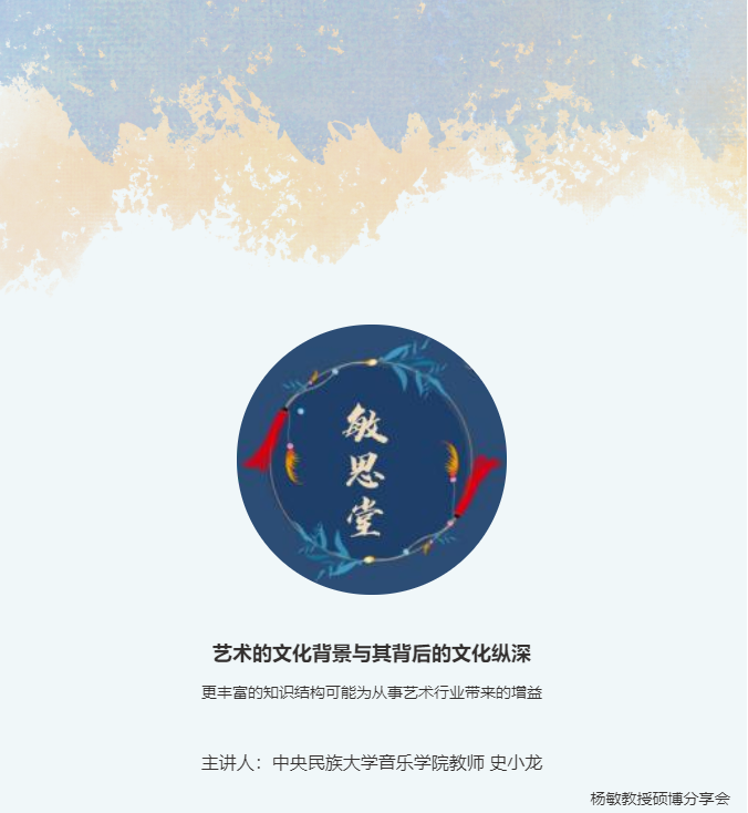 为进一步提高我院硕士、博士必威BETWAY西汉姆联介绍的科研能力和艺术创新能力,2022年11月4日,必威BETWAY西汉姆联副院长杨敏教授主持召开的第五期“敏思堂·硕博分享会”顺利举行。此次分享会有幸邀请到bw必威西汉姆联官网音乐学院史小龙老师主讲,分享主题为“艺术的文化背景与其背后的文化纵深——更丰富的知识结构可能为从事艺术行业带来的增益”。此次分享旨在为同学们树立正确的文化站位、明确文化担当,深化对舞蹈学科乃至艺术门类的理解与认识,进一步拓展学生的创新研究视野。