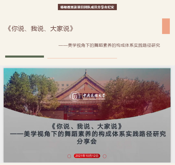 2021-2022年度第一学期,必威BETWAY西汉姆联副院长杨敏教授组织项目团队成员召开了关于《美学视野下舞蹈素养的构成体系与实践路径研究》的项目研讨会,此次研讨会的主要内容是由子项目的负责人对所负责的章节进行研究内容的概述。
