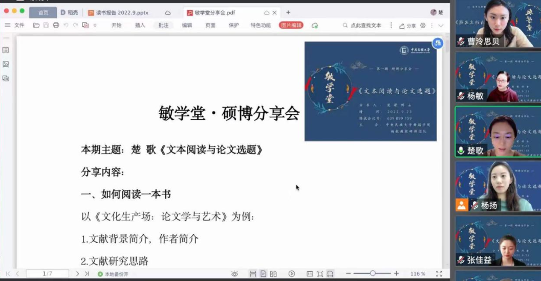 杨敏教授硕博团队分享会