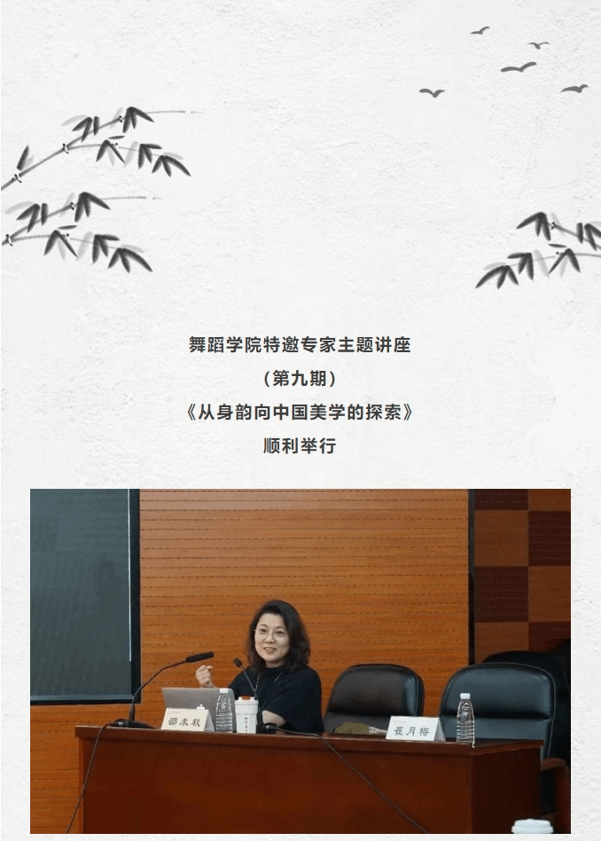 邵未秋教授提及中国古典舞具有独特的审美特性和文化内涵;以弘扬中华优秀传统文化、中国传统哲学和美学为根基;具有民族特色和审美稳定性与经典性。在身韵的学习中要做到以下几点:其一,掌握审美规范和动作特点;其二,领会中国艺术内外相合,气韵相生的艺术方法;其三,理解动作背后的中国身体文化及中国艺术传统;其四,增强舞蹈的文化厚度及身体的艺术表现力。