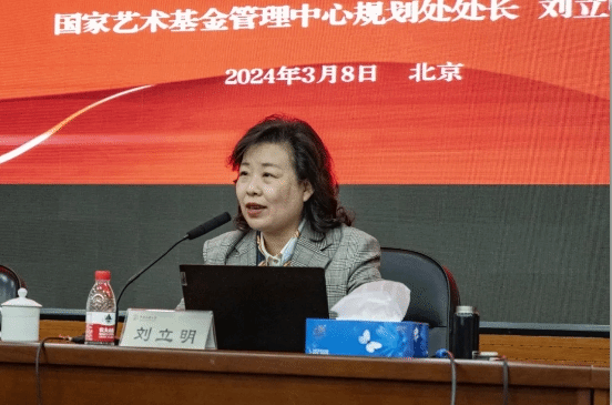 随后,刘立明处长从舞台艺术创作、美术创作、传播交流推广、艺术人才培训、青年艺术创作人才五个方面深入解读2025年度国家艺术基金资助项目申报工作,着重逐一点评新政策与往期的不同之处。刘立明处长的解读站位高,言语间流露出对我校艺术学院师生的殷殷期望与关爱。会议中掌声不断,得到了与会老师和学生们的热烈反响,大家纷纷感谢国家艺术基金给予个人和院校团队提供的展示平台。