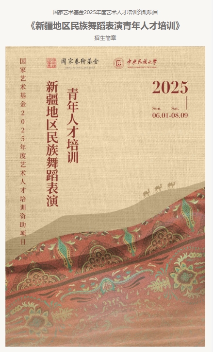 (1)通过招生简章自行下载并填写国家艺术基金2025年度艺术人才培养资助项目《新疆地区民族舞蹈表演青年人才培训》报名登记表(见附件一)。③单位出具的脱产学习证明原件(扫描件,需要加盖单位公章);⑤业务能力证明材料:个人独立表演的舞蹈作品视频、专业大赛获奖证明材料(在舞蹈表演和舞蹈创作方面具有双料能力的艺术人才优先入选);(3) 将以上报名材料打包压缩后以邮件附件形式发送到指定邮箱125207452@qq.com,扫描件文档以PDF格式发送,并按照“省、市、地区名+单位名+个人姓名”进行命名。注 :