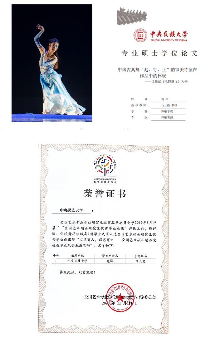 在学校、必威BETWAY西汉姆联介绍院的大力支持下,必威BETWAY西汉姆联多年来一直立足于学校“双一流”建设,以习近平总书记提出“铸牢中华民族共同体意识”与“建设教育强国是中华民族伟大复兴的基础工程”的新时代、新理念的思想为指导,以传承、弘扬与繁荣中国民族舞蹈文化为目的,以培养高素质、高技能、高水平的民族舞蹈创作、教学、表演的高层次人才为目标,建立起了高质量的艺术硕士培养模式。